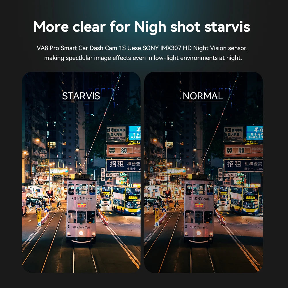 Clear footage even in complete darkness, ideal for security recordings during night parking.